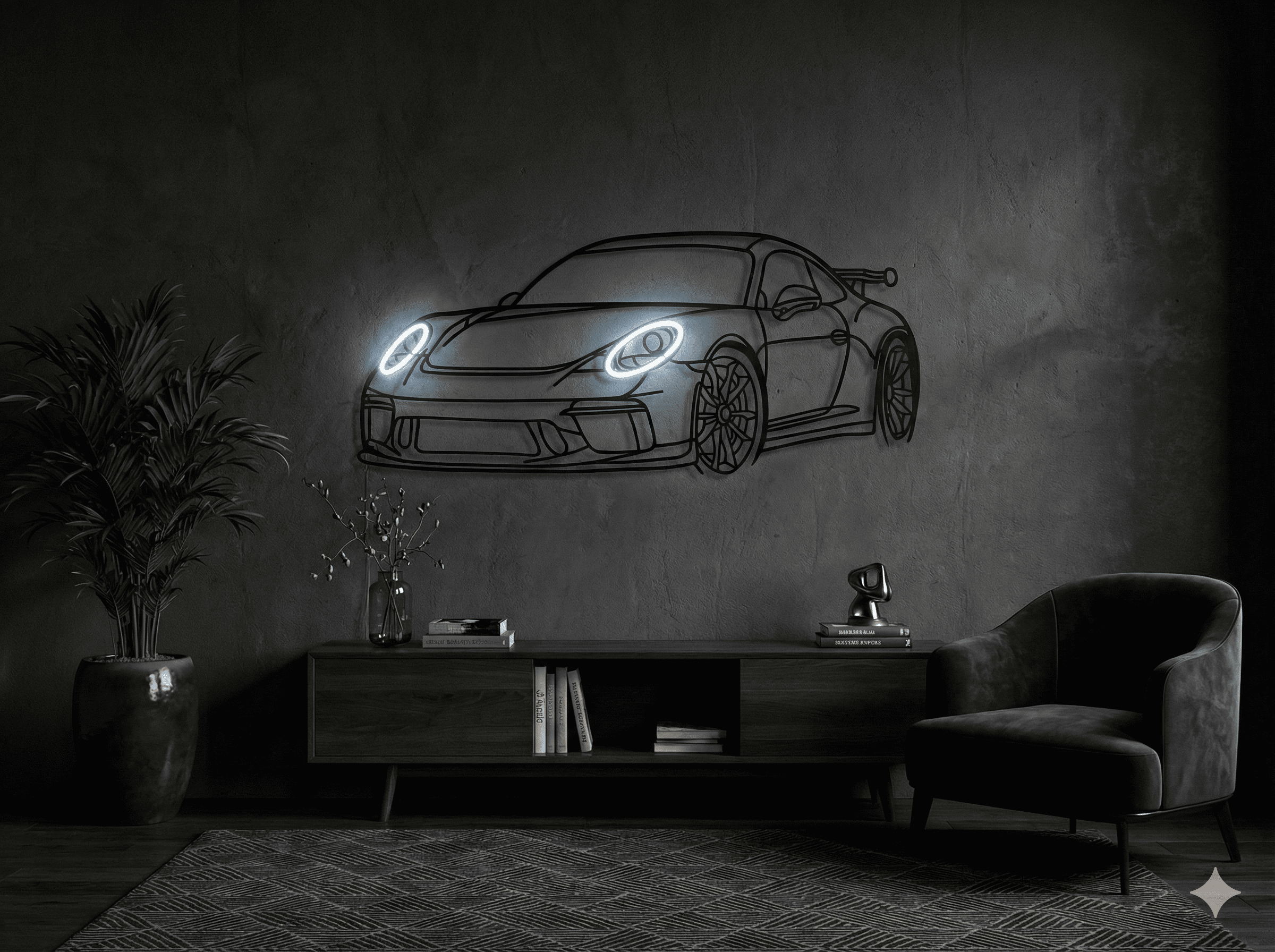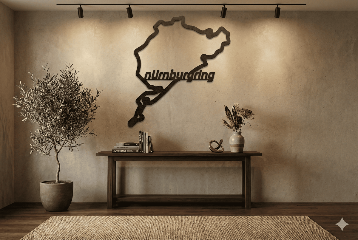 Metal – Art brings a bold, premium touch to any enthusiast’s space — from garages to living rooms. Each piece is laser-cut from 2 mm thick steel, then hand-polished and powder coated in matte black for a sleek, lasting finish.